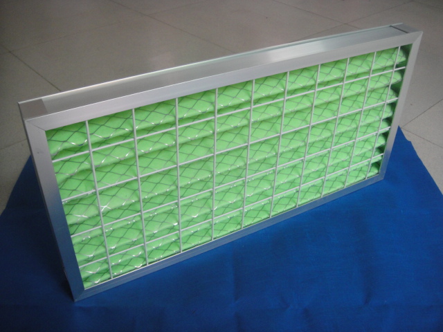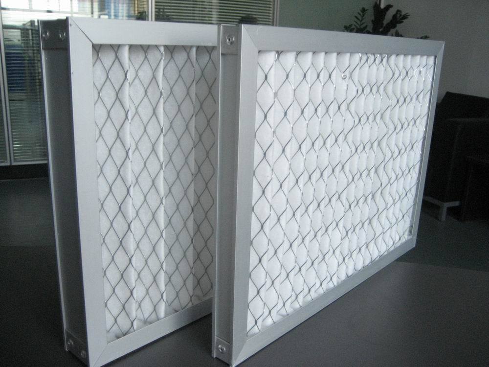 G4初效折疊過濾器的濾料為3mm-6mm的針刺過濾棉,材質為合成纖維,它表面附著硬膠,所以在做成初效過濾器時,彎折成W型后不易變形,且非常牢固;在使用一段時間以后,可用風槍先吹掉表面的粉塵,再用水槍清洗里面的污垢,達到多次沖洗后使用的作用。如果需要留框,只更換過濾棉,那么也可做成可拆可更換式的結構。